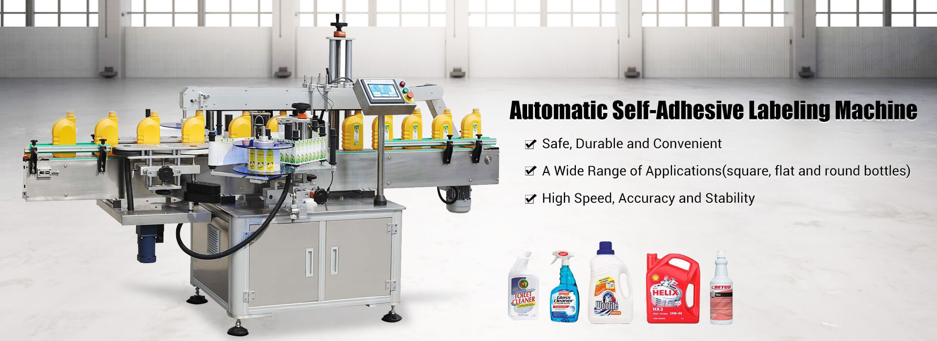 Наша основна продукція включає автоматичну машину для розливу, машину для укупорки, маркувальну машину та ін. Наша продукція широко використовується у фармацевтичній, харчовій, побутовій хімії, косметичній промисловості тощо.